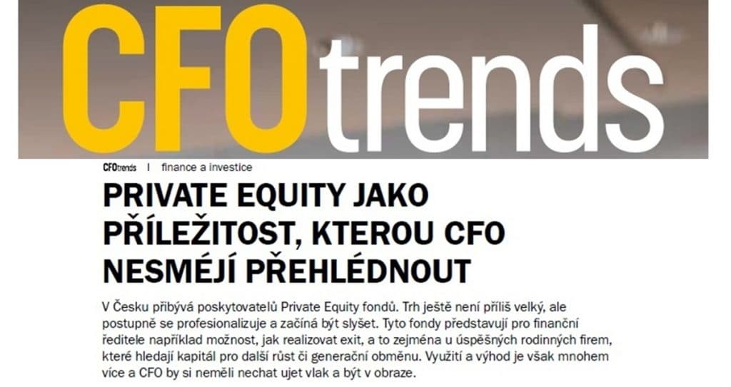 V aktuálním vydání odborného časopisu CFO Trends najdete článek věnovaný Private Equity, a zejména oblastem, kde se zájmy Private equity fondů prolínají s činností finančních ředitelů podniků. Jsme rádi, že do diskuse přispěl i náš obchodní ředitel Roman Pfeffer.